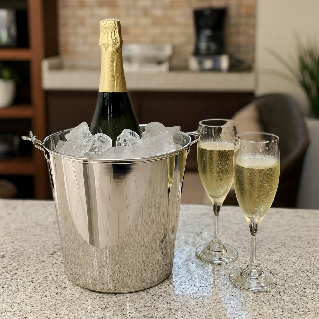 Mantenha suas bebidas sempre geladas com o Balde de Gelo com Alça Inox 7,5L. Produzido em aço inox de alta qualidade, é resistente, durável e fácil de limpar. Seu design elegante combina com qualquer ocasião, seja em festas, churrascos ou eventos sofisticados. A capacidade de 7,5 litros permite armazenar uma boa quantidade de gelo ou garrafas, mantendo a temperatura ideal por mais tempo. A alça prática garante transporte seguro e confortável. Ideal para bares, restaurantes ou para uso doméstico.