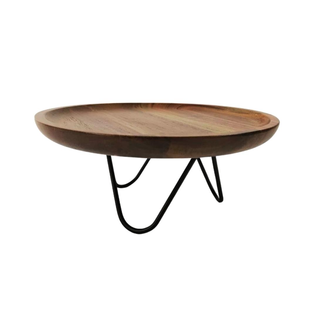 Bandeja de Madeira Redonda com Pé de Metal 25x12cm