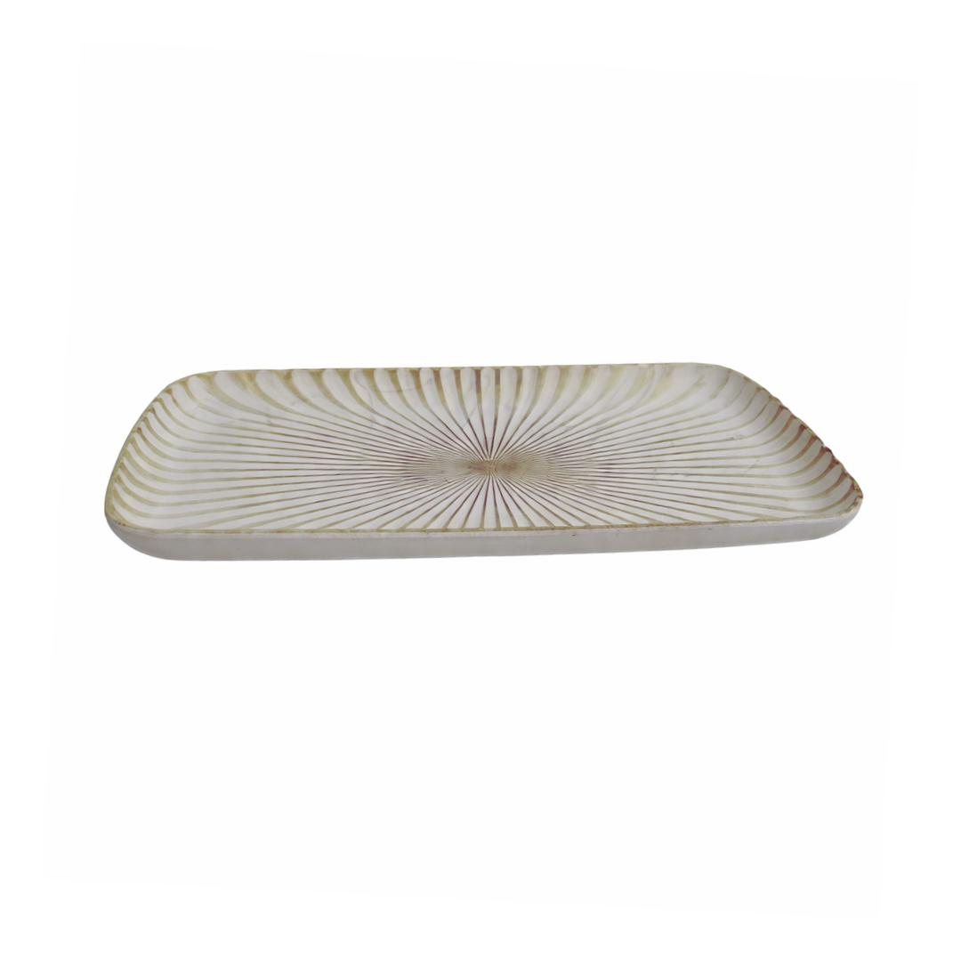 A BANDEJA MDF DECORATIVA RETANGULAR RUSTICA 35X18CM é a escolha ideal para quem busca um toque de charme e personalidade na decoração. Com design retangular e cantos levemente arredondados, a peça apresenta textura em relevo radial que valoriza o acabamento rústico e traz sofisticação ao ambiente.