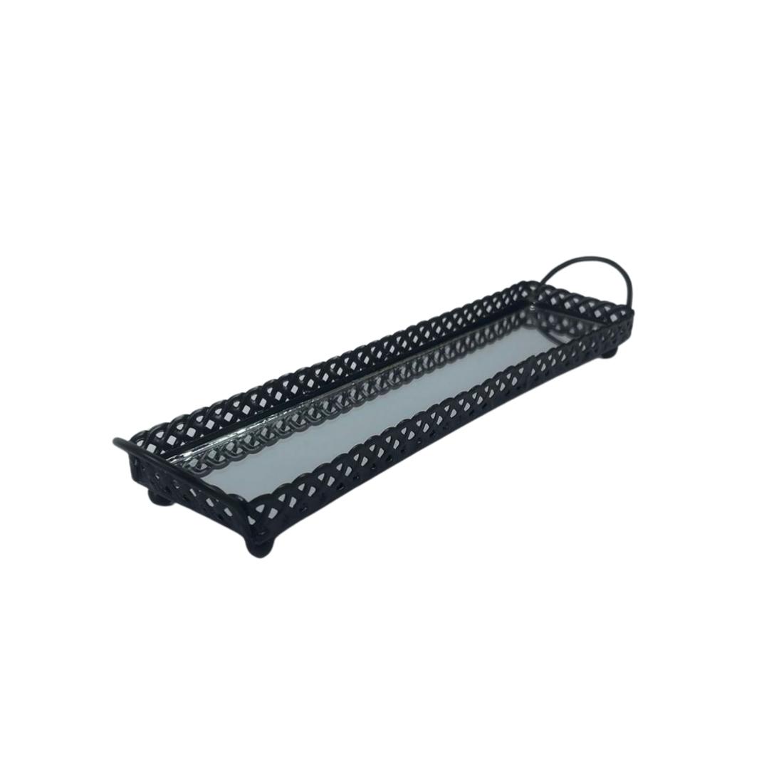 Bandeja Retangular em Metal com Espelho 30x6,5cm para Decoração Sofisticada