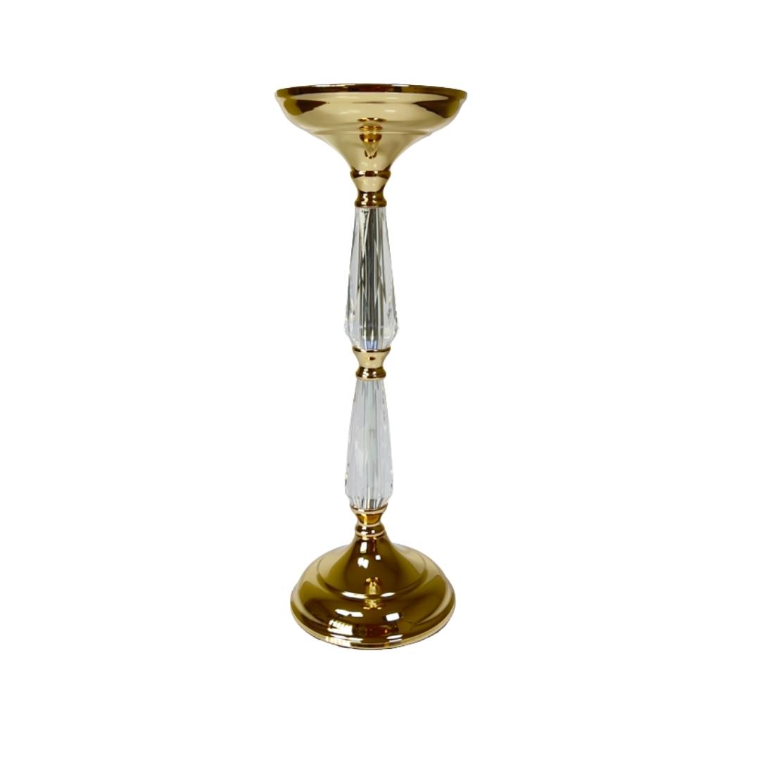 O CASTIÇAL EM ACRÍLICO COM BASE DOURADA 12,5X37CM