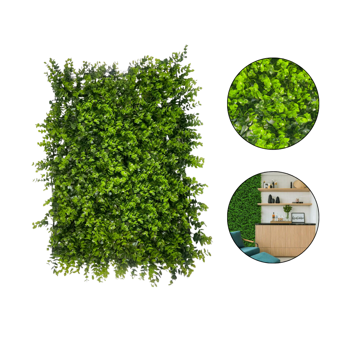 Com tamanho 60x40cm e folhagem com 5cm de altura, essa placa é fácil de instalar e pode ser recortada e encaixada conforme o projeto. É perfeita para uso interno ou externo, sem desbotar com facilidade.
