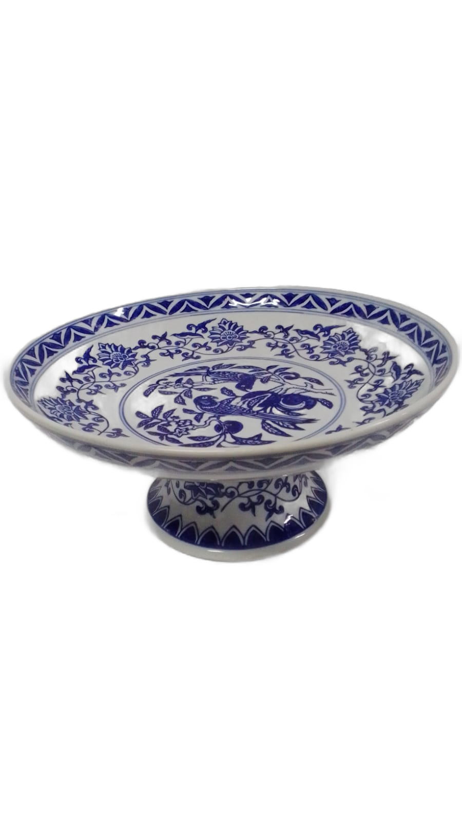 Transforme cada ocasião em um momento especial com o Prato para Bolo de Cerâmica Azul e Branco — um item que une elegância, tradição e funcionalidade na sua mesa posta.